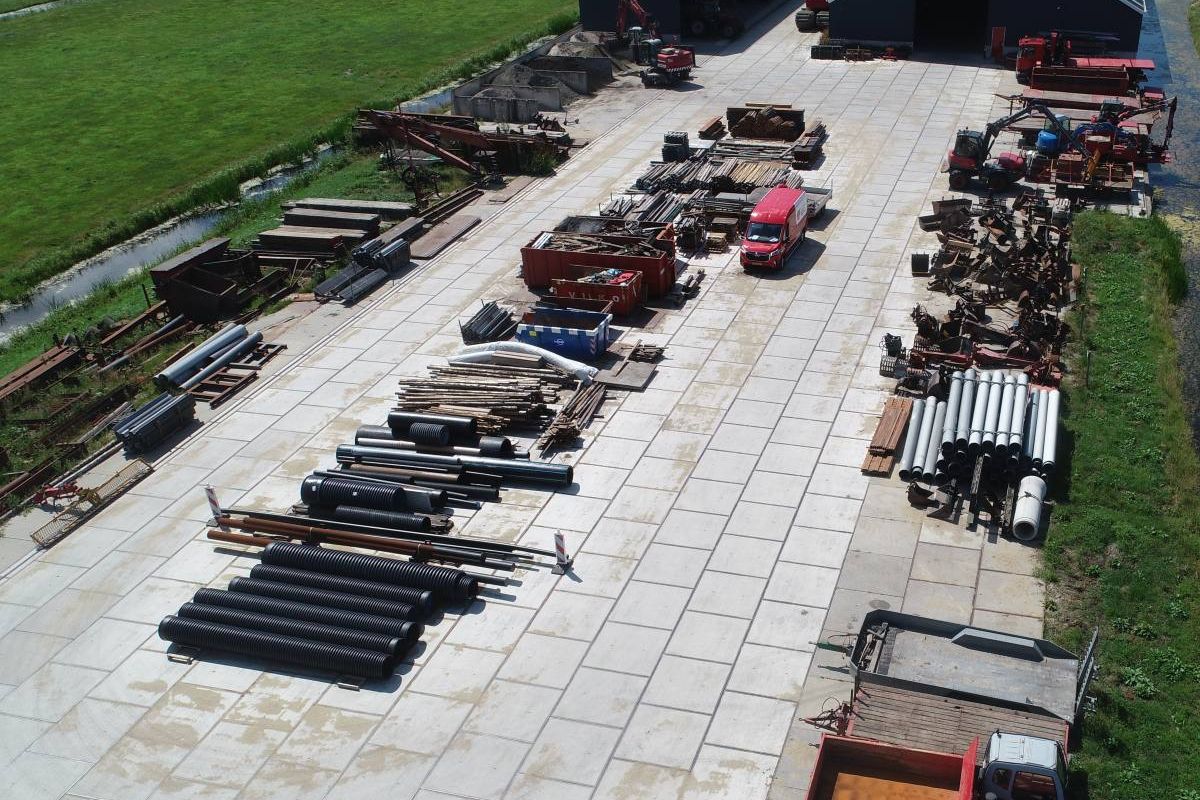 Daarnaast beschikken we over een geavanceerde powerhub van 725 kWh, waarmee we energie kunnen opslaan en naar de projectlocaties kunnen brengen. Zo blijven ook onze zwaarste machines emissieloos inzetbaar. Kortom: ons bedrijfsterrein vormt het duurzame hart van de organisatie.