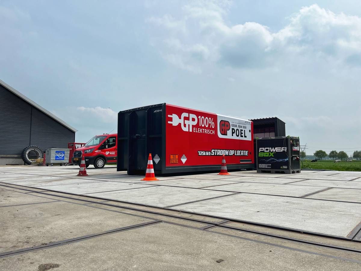 We beschikken onder andere over 12 elektrische bedrijfswagens, 4 elektrische kranen, 3 elektrische boten, 1 elektrische vrachtwagen en een breed pakket aan aanvullend elektrisch materieel. Naast onze 725 kWh powerhub, hebben we nog de 70 kWh + 175 kWh en 400 KWh powerboxen. Dankzij onze laadfaciliteiten en powerhubs kunnen we deze machines optimaal inzetten, zelfs op drukke werkdagen.