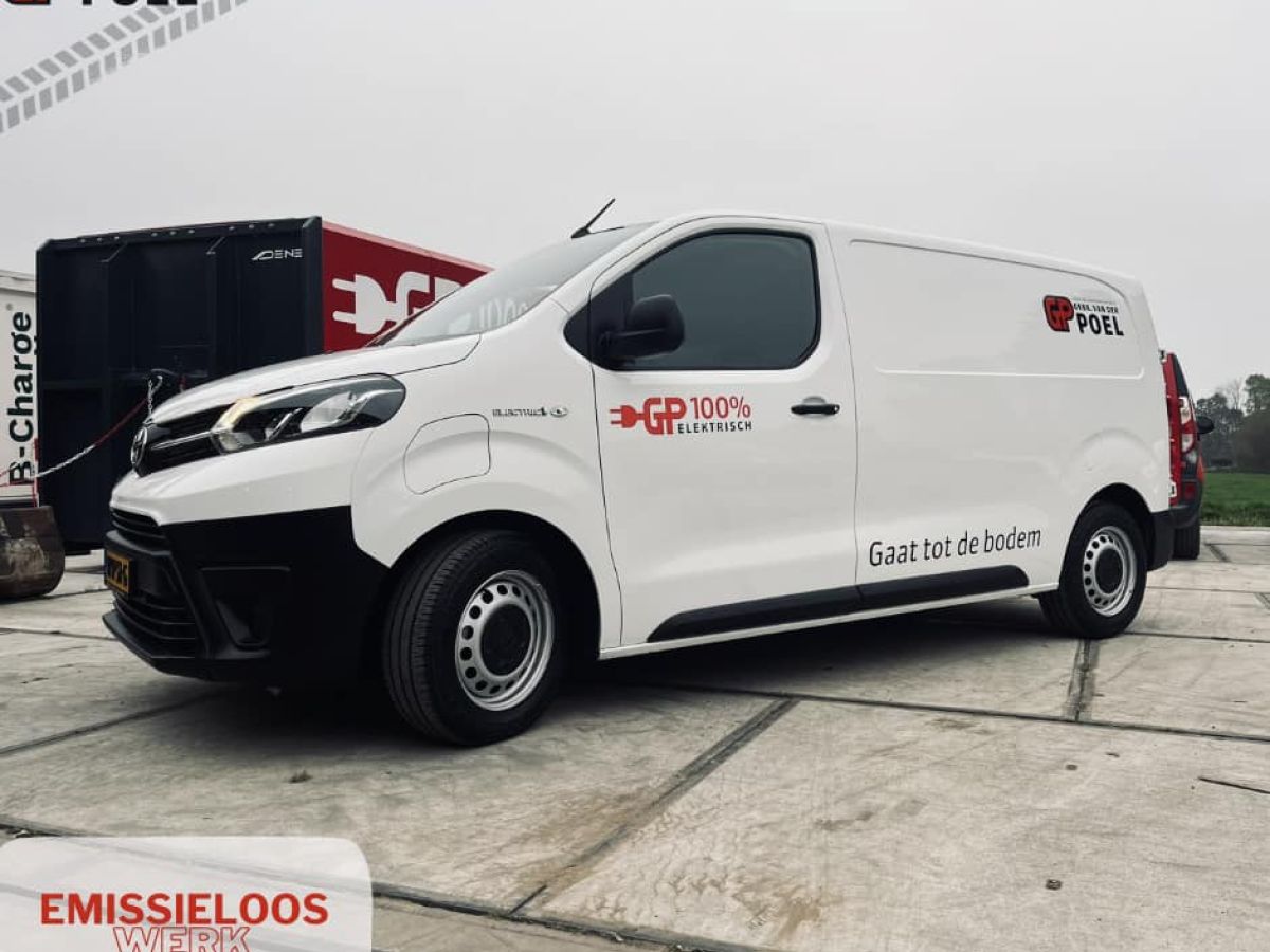 Ons materieelpark groeit steeds meer richting volledig emissieloos werken. Inmiddels is een groot deel van ons wagen- en machinepark elektrisch, waardoor we stiller, schoner en efficiënter kunnen werken in elk project.